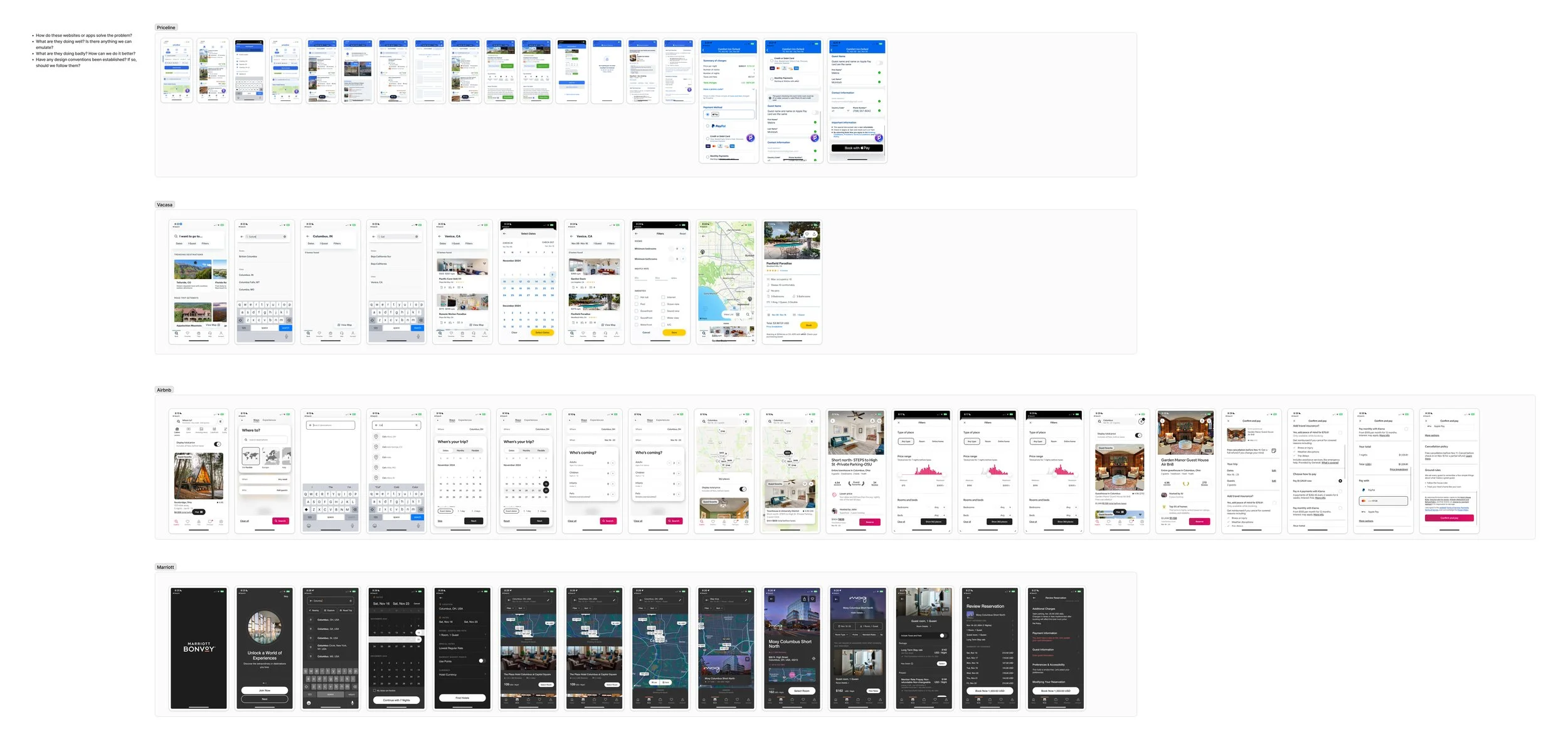 My design process began with competitive benchmarking. I selected four mobile booking apps to better understand the hotel booking space along with the flow, design, and potential differentiating features.