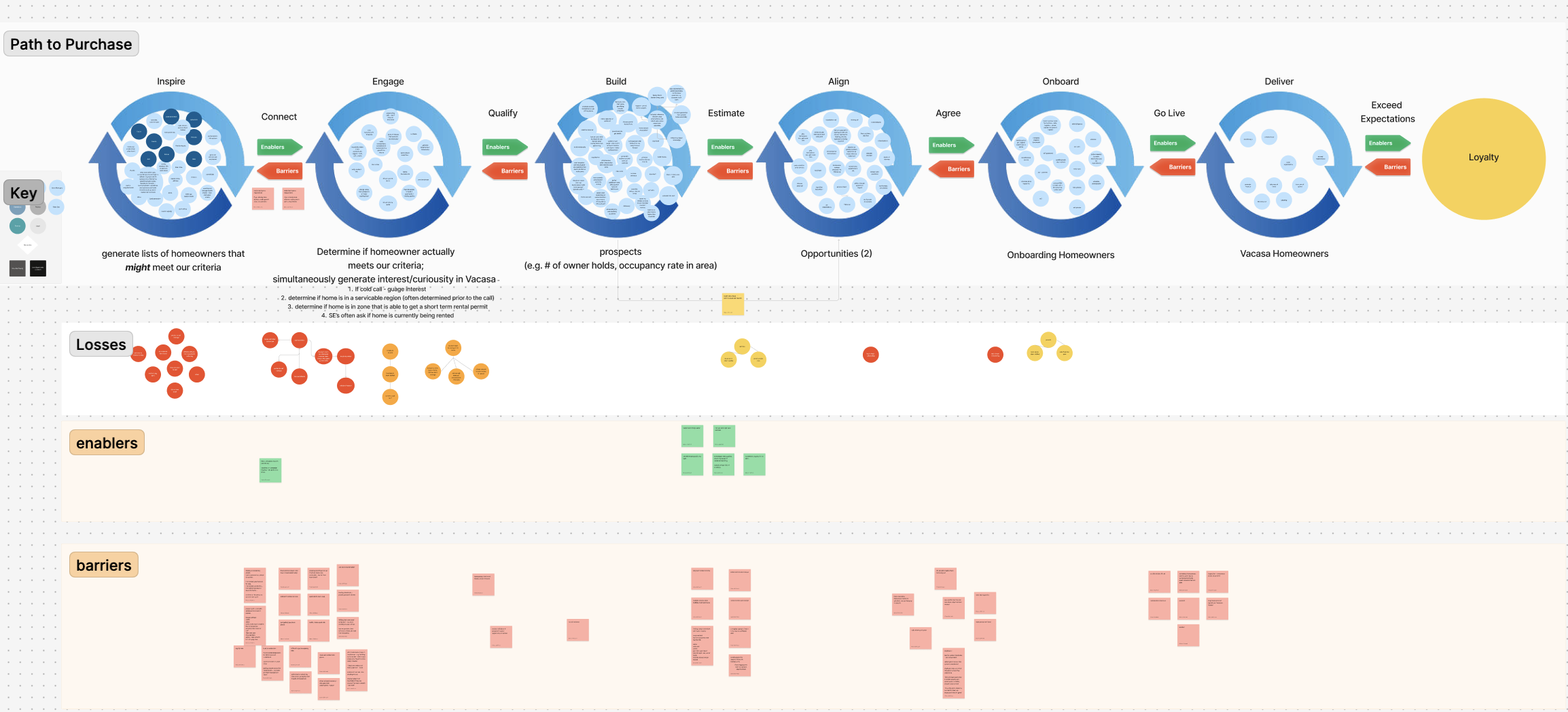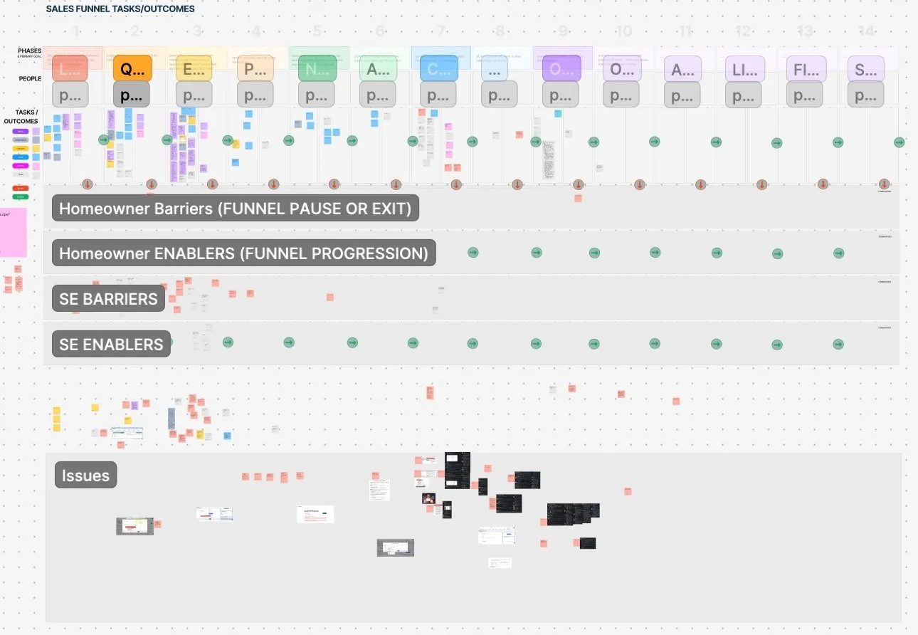 The amount of tasks that I needed to organize was intimidating. I felt that it would be helpful to group the massive amount of tasks that the sales executives were completing. Somewhat of a spin on traditional affinity maps, I grouped tasks by the major outcomes that needed to occur prior to a contract being signed. This type of organization helped the stages of the sales journey naturally come together - almost on its own.