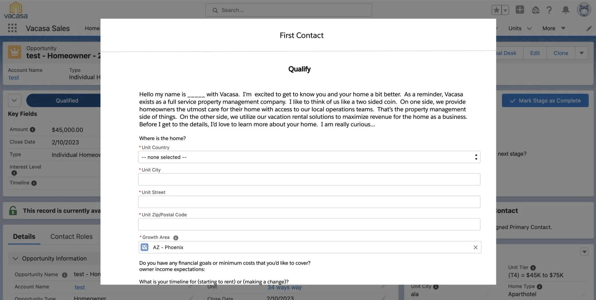 Vacasa’s new customer management system was confusing, cumbersome, and time consuming. It wasted a tremendous amount of the sales executives’ time and effort, and when the sales team tried to speed through administrative tasks, data quality became an issue as well.